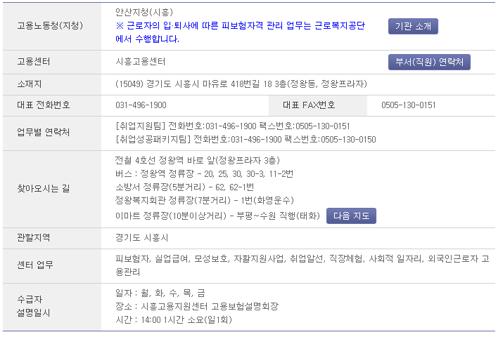 시흥고용센터 전화번호 : 031-496-1900