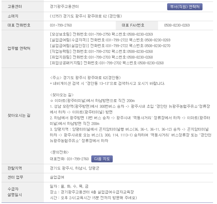 경기광주 고용센터 전화번호 031-799-2760