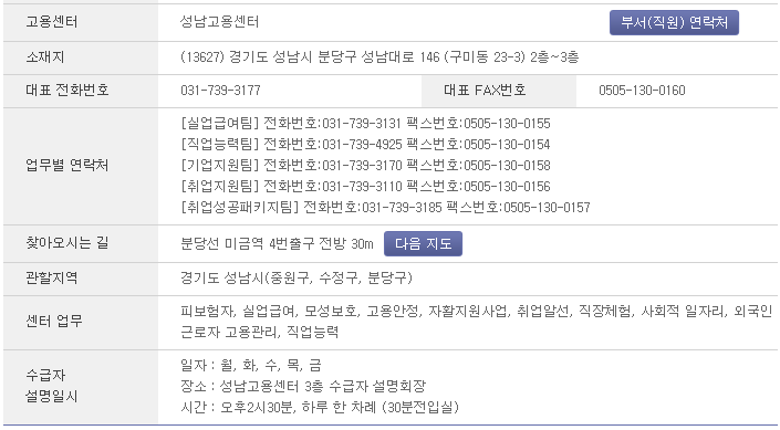 성남고용센터 전화번호 :031-739-3177