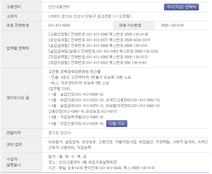 안산고용센터 전화번호 : 031-412-6600