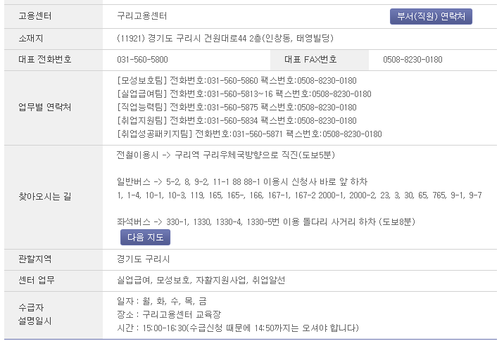 구리고용센터 주소 : 경기도 구리시 건원대로 44 2층(인창동 태영빌딩)