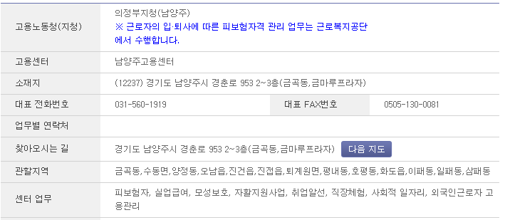 남양주 고용센터 주소 : 경기도 남양주시 경춘로 953