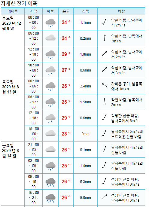 장기예측을 클릭하면 날씨를 일주일이상 예보해줍니다.