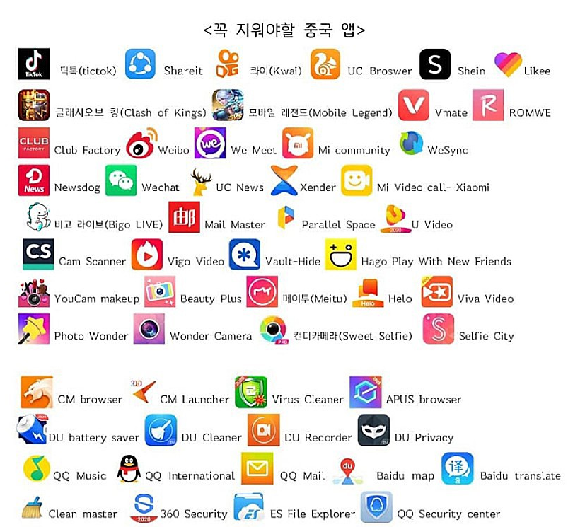 꼭지워야할 중국앱