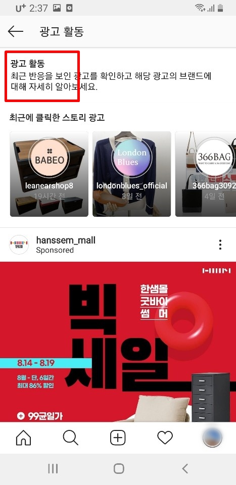 간단하게 " 인스타 추천게시물 안뜨게" 를 완료했습니다