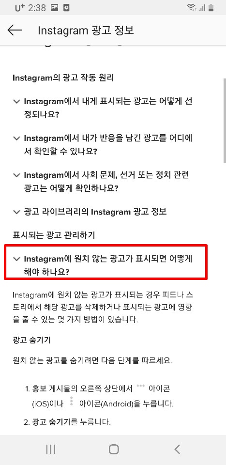 여기서 자신이 보기싫은 게시물을 하나클릭해줍니다.