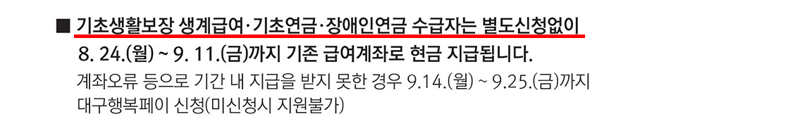 8월24일 (월) ~ 9월11일 (금) 까지 기존 급여계좌로 현금 지급됩니다.