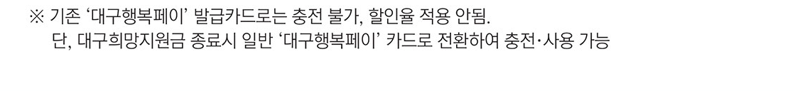 ◈ 기존 " 대구행복페이 " 발급카드로는 충전불가, 할인율 적용안됩니다