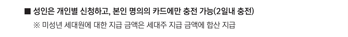 ※ 미성년 세대원에 대한 지급 금액은 세대주 지급 금액에 합산지급