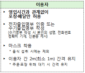 1. 영업시간과 관계없이 포장, 배달만 허용