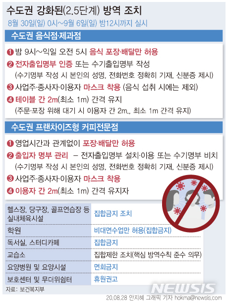 코로나2.5단계 수도권 음식점 핵심 방역수칙