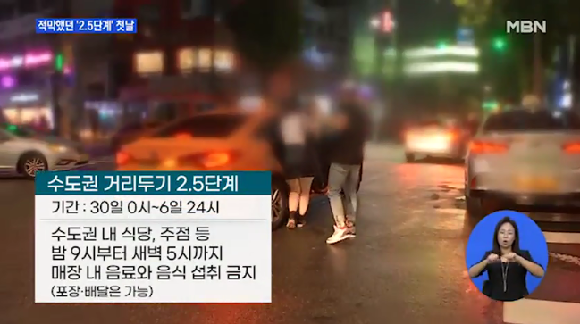 사회적거리두기 2.5단계는 앞으로 일주일동안 수도권 일반음식점, 휴게음식점, 제과점은 오후 9시부터