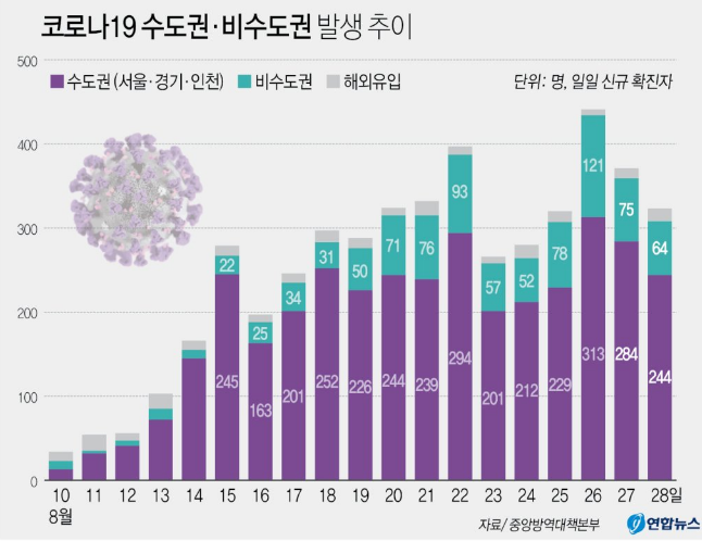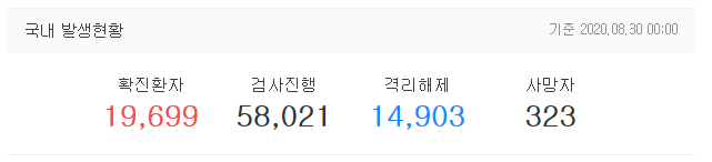 신종코로나 바이러스 코로나19의 재확산으로 인해 확진자수가 계속 증가세에 있습니다.