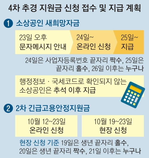 행정정보, 국세코드로 확인되지 않는 소상공인은 추석 이후 지급