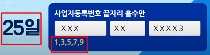 25일에는 사업자등록번호 끝자리 홀수만 신청가능합니다.