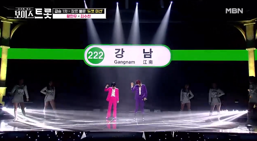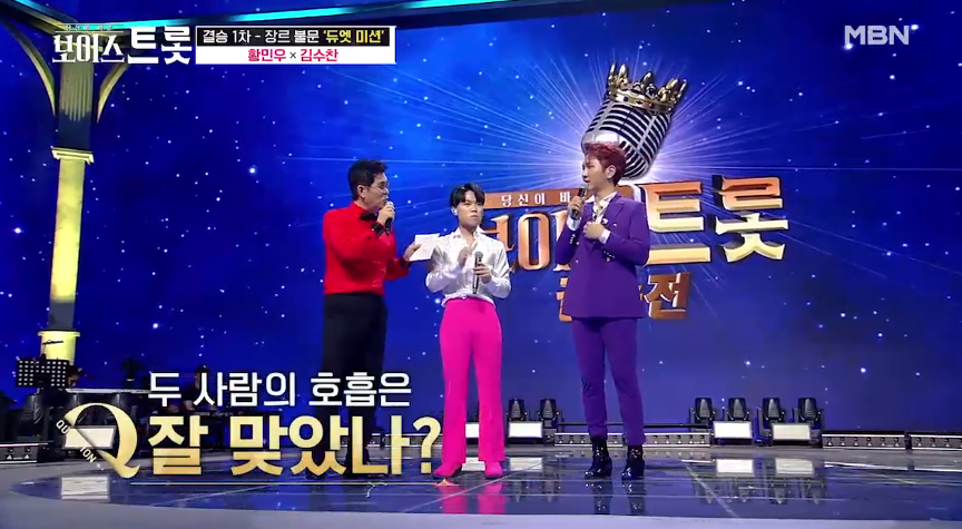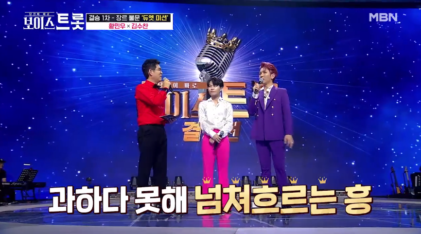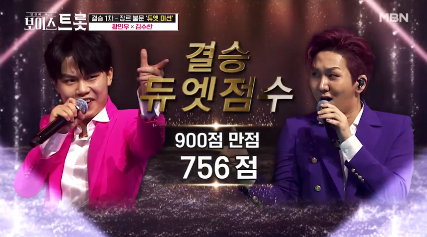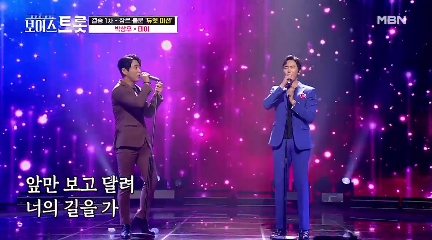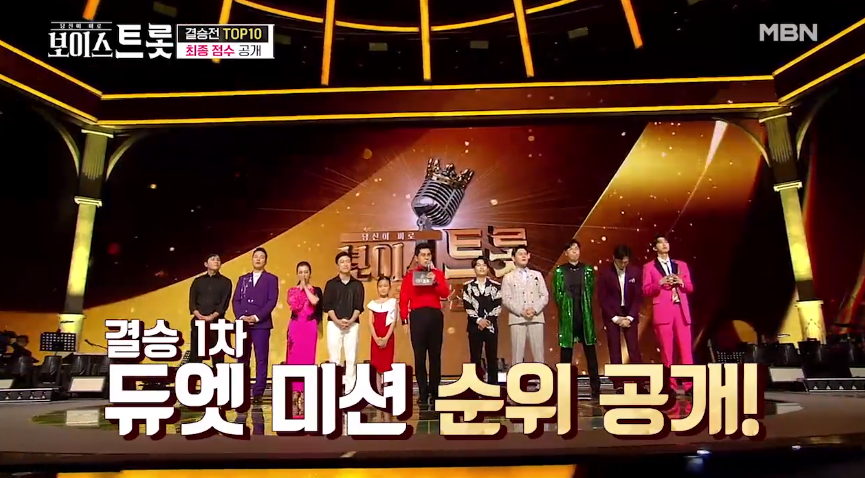 보이스트트롯 결승전은 1차전에서 장르불문 듀엣 미션과 2차 개인미션으로 TOP3 진출자를 결정한후