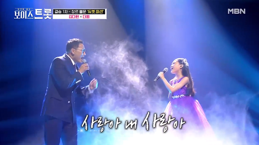 청학동 소녀 김다현은 더원과 함께 사랑아를 불렀는데요