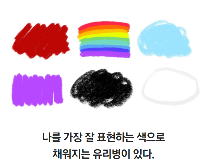 1. 나를 가장 잘 표현하는 색으로 채워지는 유리병이 있다