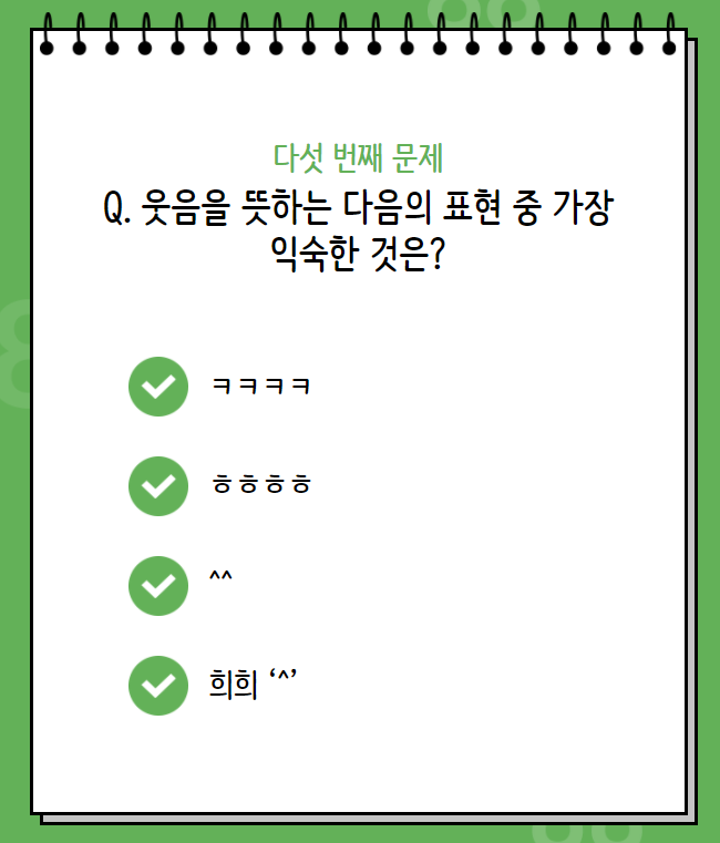 웃음을 뜻하는 다음의 표현중 가장 익숙한것은 ?