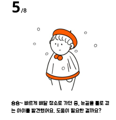 슝슝~ 빠르게 배달 장소로 가던중 눈길을 홀로걷는