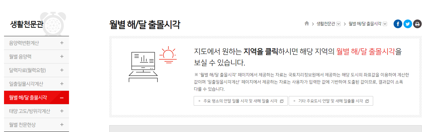 월별 해/달 출몰시각 | 생활천문관 | 천문우주지식정보