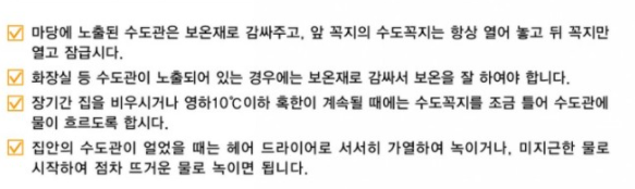 ▶장기간 집을 비우거나 영하 10도 이하 혹한이 계속될때는